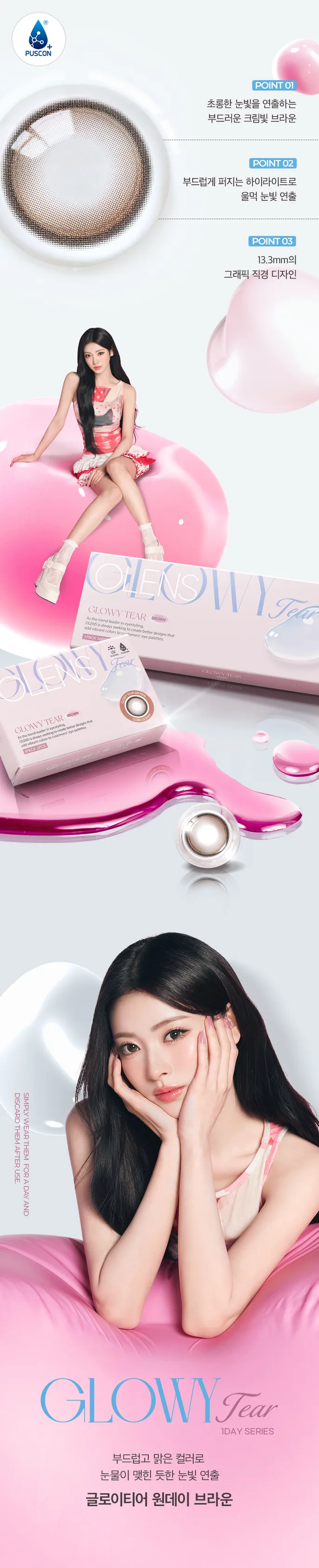 너무 작지도 않구 너무 크지도 않고 딱 눈을 또렷하구 이뻐보이게 해서 너무너무 조아여!!! 뻑뻑하지도 않고 건조한 것도 덜해서 완전 인생렌즈🩷💗🥹