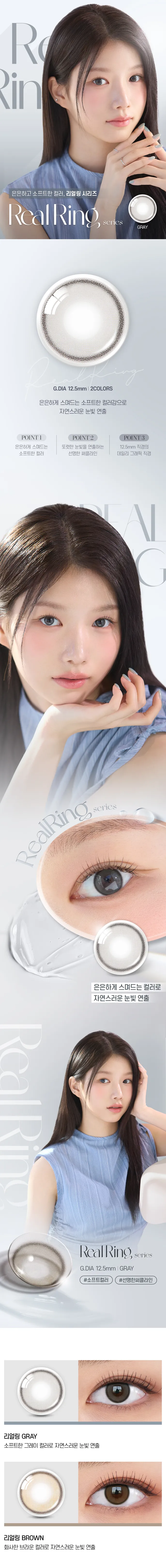 직경작은 렌즈가 사고싶었는데 리얼링 정말 좋아요! 처음낀 렌즈였는데 렌즈끼면 건조하다는 얘기가많잖아요, 근데 저는 인공눈물 한번도 안넣고 오전6시부터 오후 10시까지 있었는데 약간의 이물감 빼고 정말 편했어요!